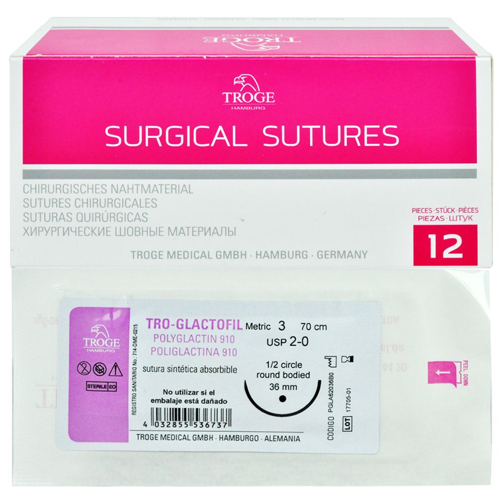 TROGE SUTURA TRO-GLACTOFIL #2-0 70CM*12